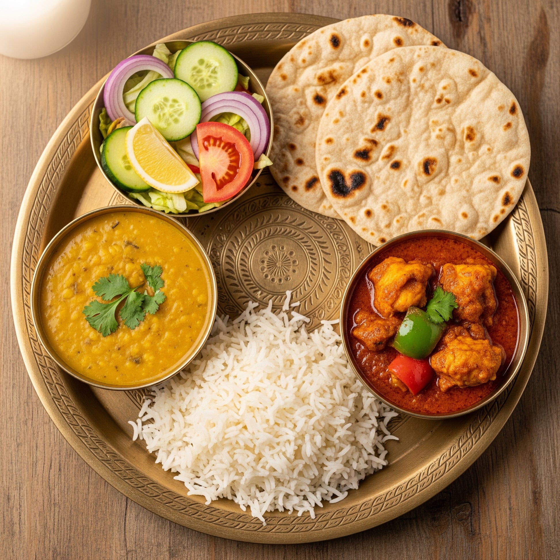 - Rice, Dal, 2pcs Roti, Salad, Chicken curry
