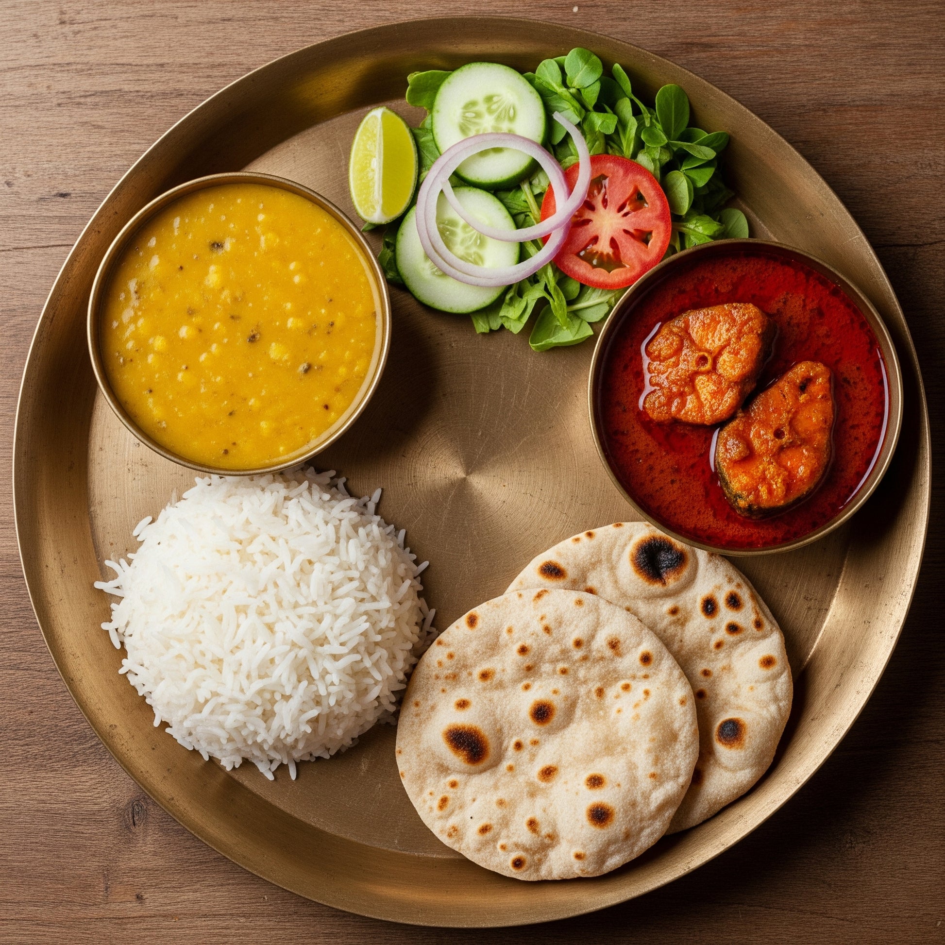 - Rice, 2pcs Roti, Dal, Salad, Fish curry